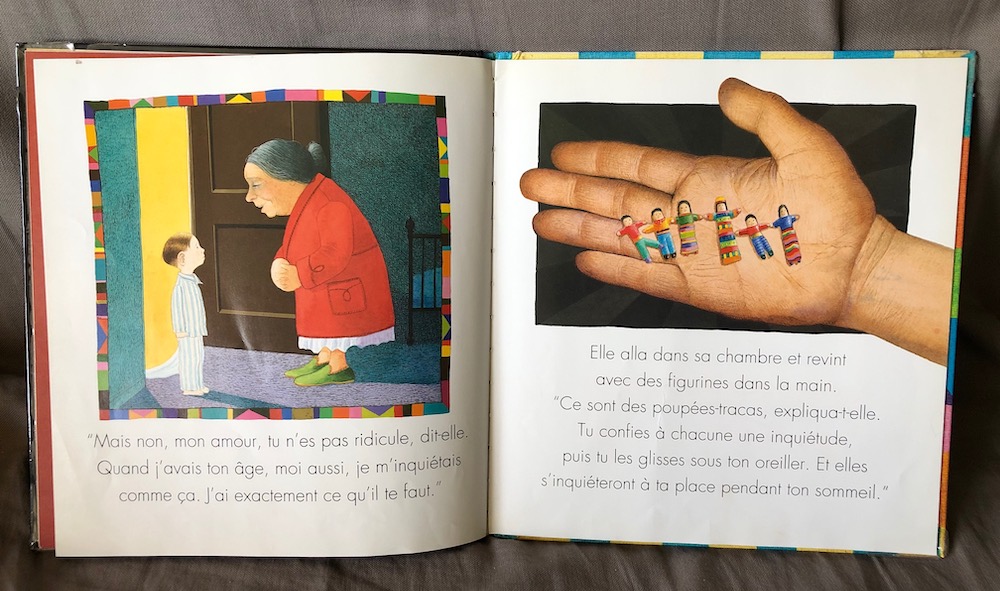 Billy se fait de la bile pour presque tout, beaucoup de choses l’inquiètent… Ses parents tentent de le rassurer mais il s’inquiète quand même et dort très mal. Un soir, alors qu’il était chez sa grand-mère, il décida de lui parler de tout ça. Sa mamie revint avec des “poupées-tracas” en expliquant qu’il suffit de confier à chacune une inquiétude et de les glisser sous l’oreiller pour qu’elles s’inquiètent à sa place pendant son sommeil. Billy appliqua les conseils de sa grand-mère et dormit comme une marmotte mais très vite il s’inquièta de nouveau, cette fois, pour tout le tracas qu’il donnait à ses poupées, mais il eut la bonne idée de leur fabriquer à elles aussi des poupées-tracas ! Et tout le monde dormit tranquillement.