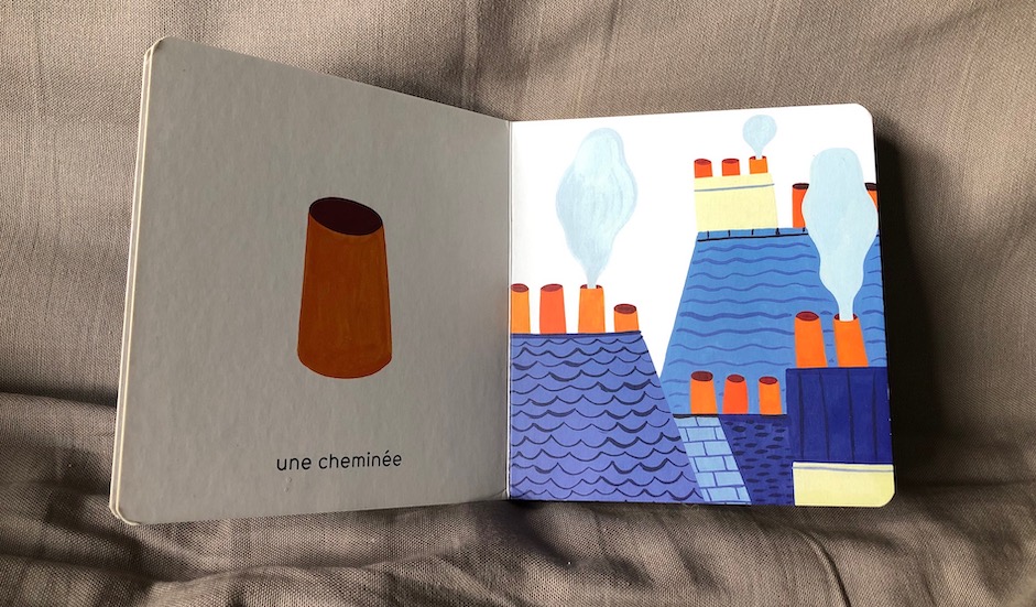 La cheminée, le croissant, le café, le pigeon, le chien… autant d’éléments que les petits citadins croisent au quotidien. Voici donc un joli imagier original de la ville pour apprendre ce vocabulaire aux tout-petits, pour découvrir les formes et couleurs de la ville.